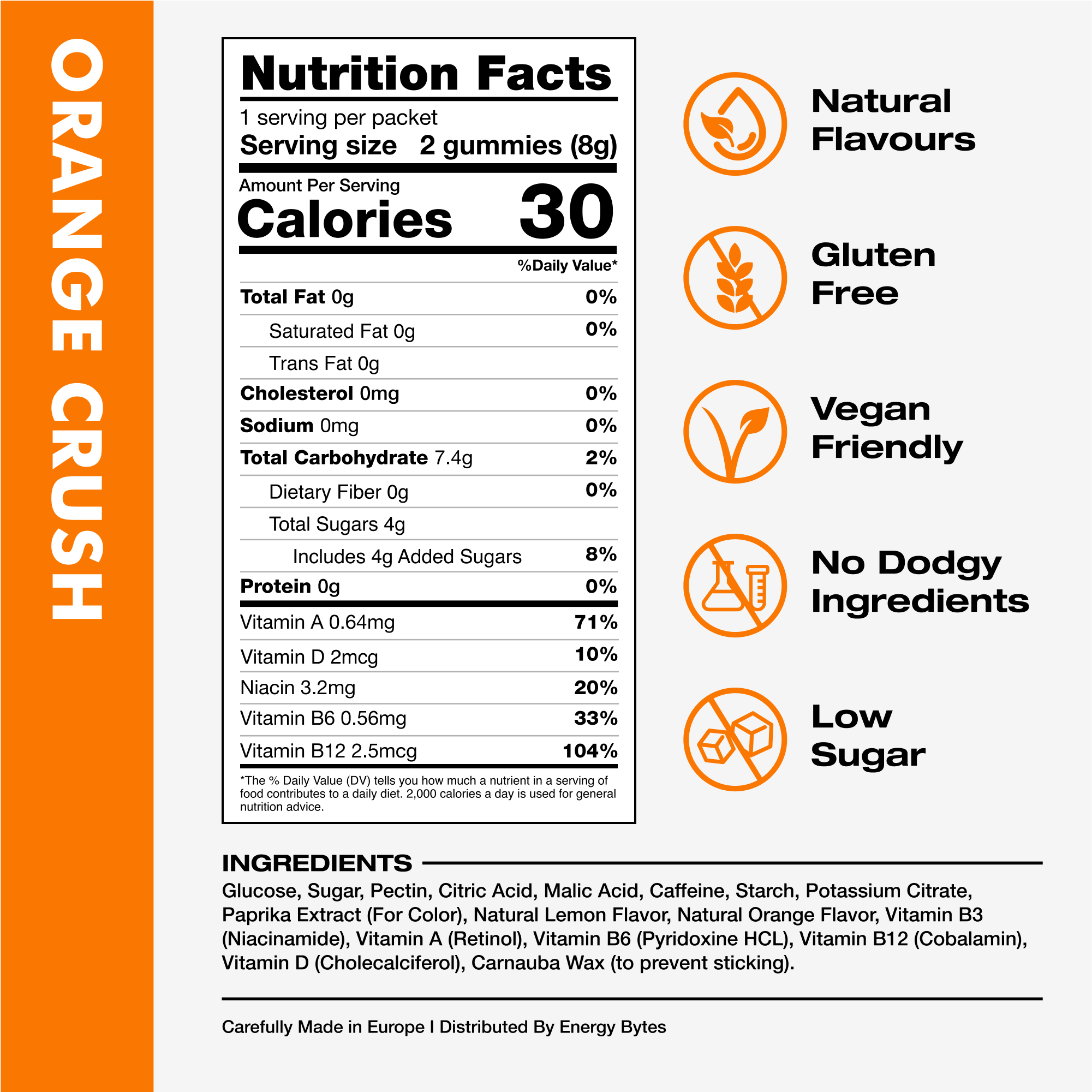 Unlike most other gummies on the market that are made with Gelatin, Energy Bytes are made with pectin from fruit peels, making them vegan-friendly.